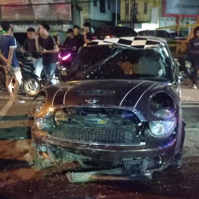 Ia menyampaikan mobil Mini Cooper itu sampai terbalik di tengah jalan. Namun, pengendara yang berada di dalam mobil tidak mengalami luka yang cukup serius.