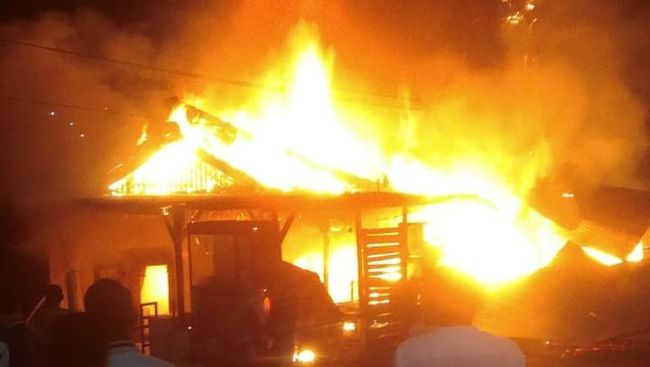 "Hampir seluruh bangunan rumah terbakar, ada tiga unit kendaraan roda dua juga tadi habis terbakar," ujar Mujiono.