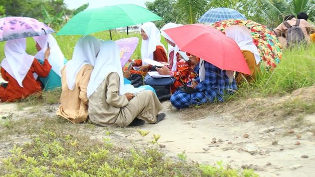 Siswa SMAN 4 Lingga yang kesusahan akses jaringan internet itu viral setelah diunggah di media sosial. Dalam postingan itu disebutkan para siswa tidak bisa mengakses jaringan internet dua provider yang ada di daerah itu. Saat ujian mereka juga terlihat sambil berpayung.