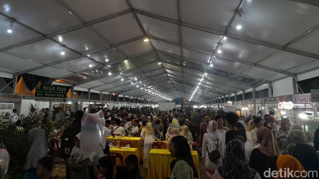 Pantauan detikSumut di lokasi, Selasa (28/3/2023) pukul 22.10 WIB, ribuan warga tersebut tersebar di dalam areal taman Sri Deli. Selain itu, warga juga memenuhi areal Jalan Masjid Raya yang terdapat stan UMKM.