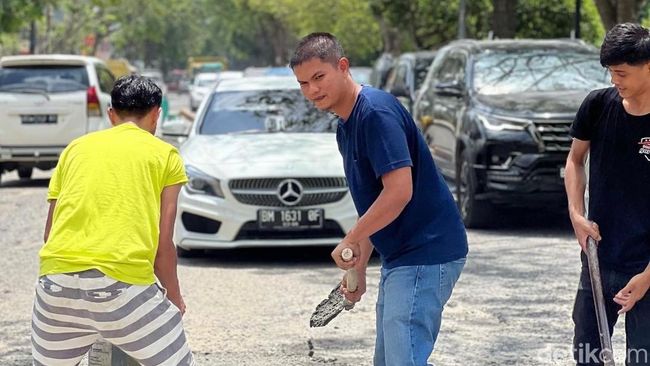 Ruko milik Bambang di Jalan Parit Indah, Pekanbaru dilempar OTK setelah aksinya mengecor jalan rusak dengan menggunakan uang pribadi viral.