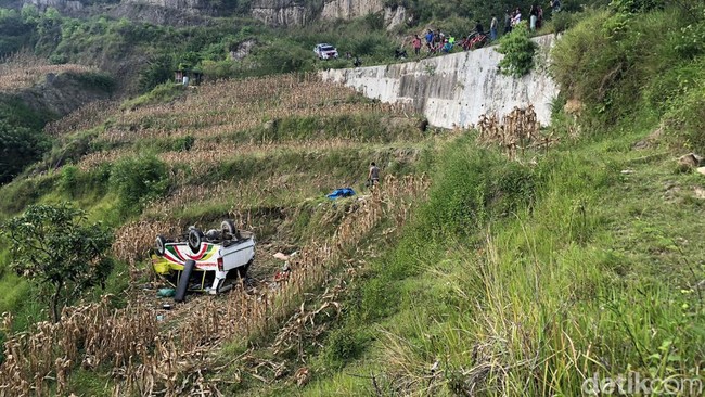 "Jadi, ketika di TKP itu ada jalan tanjakan menikung. Nah, diduga begitu dia sampai tanjakan itu mobilnya nggak naik, sehingga dia (sopir) mungkin tukar gigi ke satu, namun tidak dapat. Jadi, dia (bus) mundur lebih kurang sekitar 90 meter dan langsung terjun ke jurang itu, (kondisinya) dalam keadaan roda ke atas, terbalik," jelasnya.