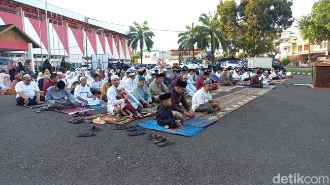 Warga Muhammadiyah melaksanakan salat Idul Fitri pagi ini. Lapangan Koni menjadi salah satu lokasi salat id di Kota Jambi.