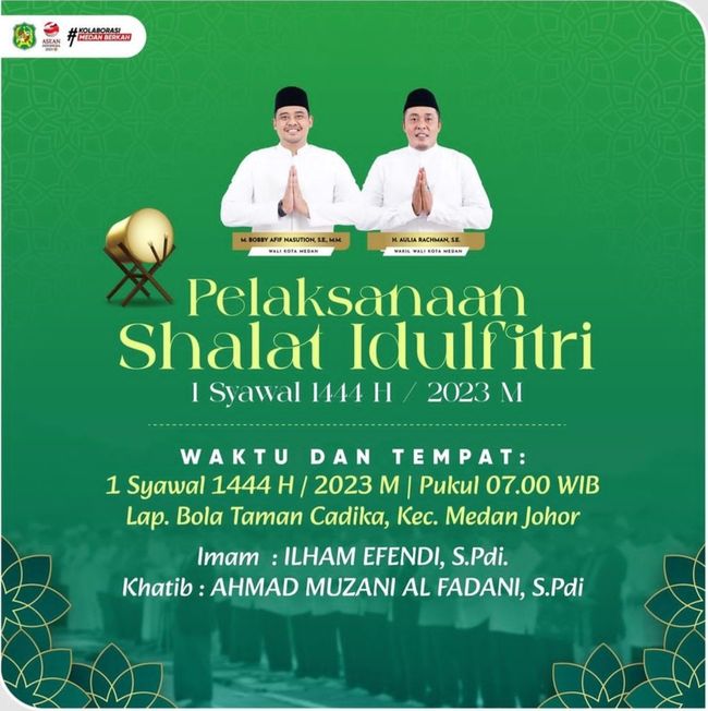 "Iya benar, Pak Wali akan salat (Idul Fitri) di sana (Taman Cadika)," kata Kadis Kominfo Arrahman Pane saat dihubungi detikSumut, Jumat (21/4/2023).