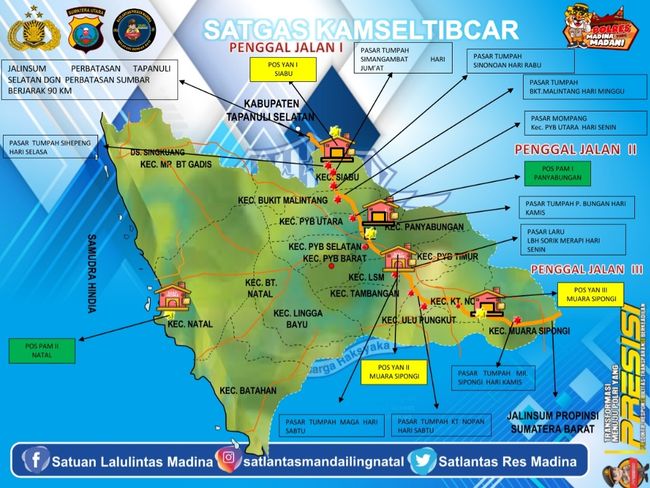 Berikut informasi terkait lokasi rawan macet dan jalan rusak di sepanjang ruas Jalinsum via Madina. Informasi ini didapat dari data yang siapkan untuk Operasi Toba 2023: