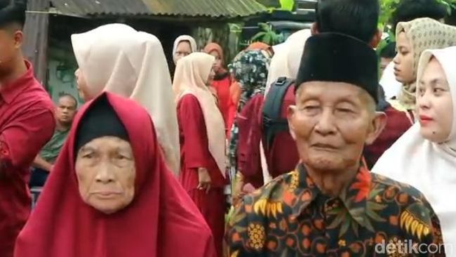 Meski hampir berusia satu abad, keduanya masih tetap bersemangat saat diarak keliling kampung oleh anak, keponakan, menantu, cucu hingga cicit mereka.
