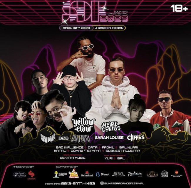 Selain Yellow Claw, SDF 2023 juga memboyong grup musik EDM hits Weird Genius ke Medan. Beranggotakan Reza Arap, Eka Gustiwana, dan Gerard Liu, Weird Genius kemungkinan akan membawakan lagu andalan mereka seperti Lathi, Last Summer, Future Ghost, dan lainnya.