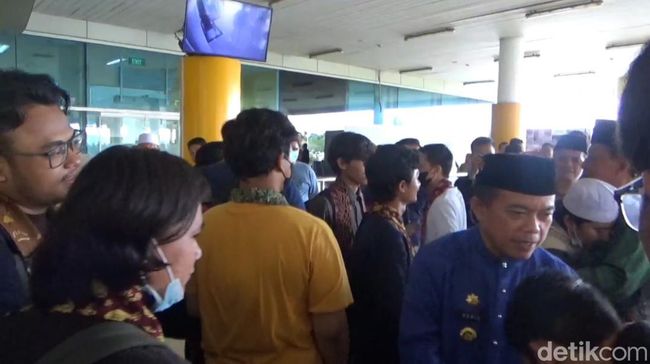 Belasan mahasiswa itu tiba di Bandara Sultan Thaha Jambi sekitar pukul 10.35 WIB. Kedatangan mereka itu juga disambut oleh Gubernur Jambi Al Haris dan Wakil Gubernur Jambi Abdullah Sani dengan didampingi oleh para keluarga dan orang tua mereka.
