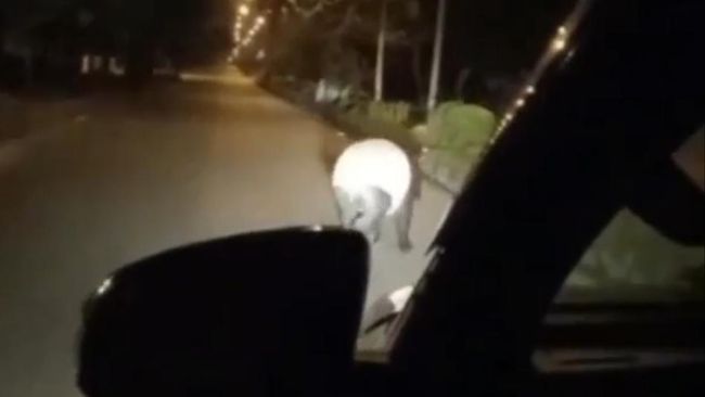 Saat direkam, tapir itu terlihat terus berlari di jalanan aspal. Tidak lama, ia lalu masuk ke area yang gelap dan hilang.