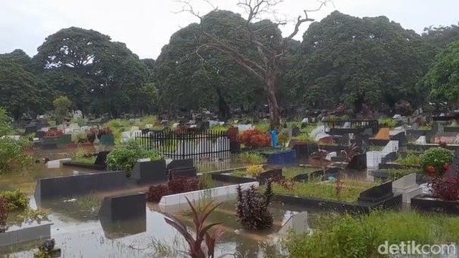 "Biasanya, tidak seperti ini. Jarang dipenuhi air segini. Selama saya bekerja jadi pembersih sampah di kawasan pemakaman baru kali ini air setinggi ini," kata Ijen.