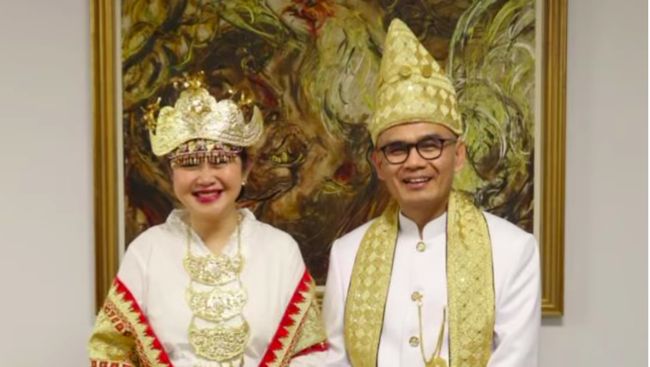 "Sebagai bentuk penghormatan, saya & Sari mengenakan pakaian adat#Lampung yang ternyata senada dengan jubah emas Raja Charles III.#inidiplomasi #indonesianway, " tulis pria yang piawai meniup saksofon ini di Twitter.
