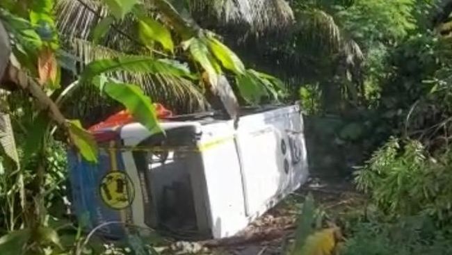 Bus berisi penumpang terguling di Kabupaten Pasaman Barat, Sumatera Barat. Akibat kejadian itu, seorang balita tewas.