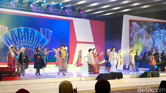 Iriana terlihat gembira saat Kahiyang berjalan bak model saat menjadi talent di atas panggung. Istri Presiden Joko Widodo juga memainkan tarian dua jempol ketika melihat anaknya tampil.