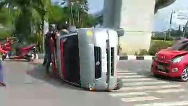 "Jadi ceritanya ambulans itu dari arah Talang Jambe katanya mau ke Pemulutan dan mau menerobos lampu merah yang memang ngebut jalannya. Nah yang mobil merah (Ayla) itu dari arah Jalan Baru (Kebun Sayur) dan memang saat itu dia sedang lampu hijau. Mobil merah itu kemudian nabrak bemper belakang ambulans itu barulah ambulans itu terbalik dan terguling," katanya.