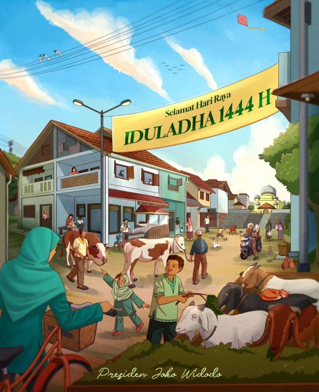 Dilansir dari detikNews, poster selamat Idul Adha ini diunggah Jokowi ke Instagram pada Kamis (29/6/2023). Poster itu menampilkan spanduk ucapan 'Selamat Hari Raya Iduladha 1444 H'.
