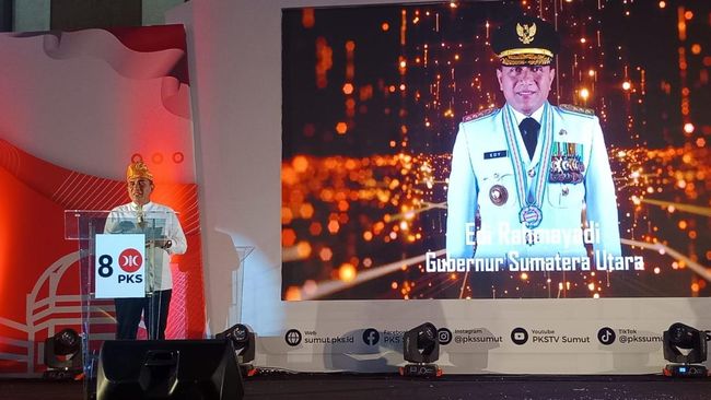 Gubernur Sumut (Gubsu) Edy Rahmayadi menghadiri acara Konsolidasi Pemenangan Pemilu 2024 PKS. Dalam acara itu, Edy menyebut hanya orang beriman yang ingin PKS menang.