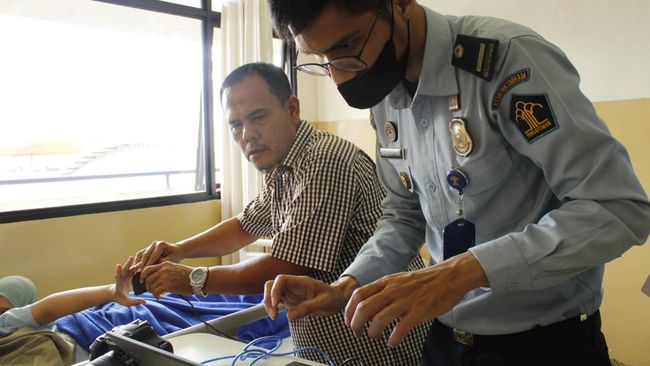 Kantor Imigrasi Kelas I Khusus TPI Medan melakukan layanan pembuatan paspor di RS USU, Medan, Selasa (18/7/2023). Program ini melayani pembuatan paspor bagi pemohon yang dirawat di rumah sakit.