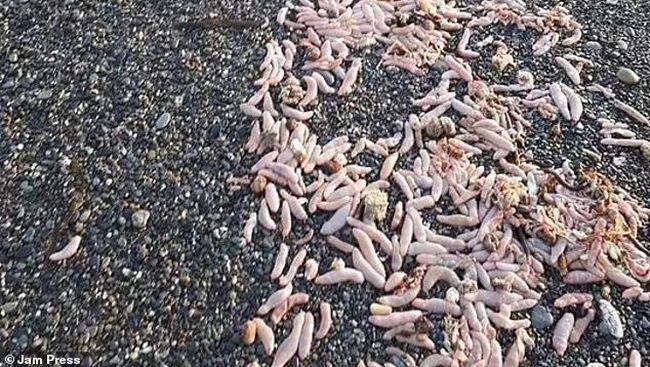 Pantai di Rio Grande, Argentina, dibuat heboh dengan kematian ribuan ikan penis Bangkai ikan penis itu pun menutup sebagian sisi pantai.
