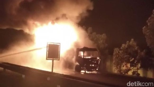 Truk tangki pengangkut BBM Pertamina terbakar di ruas Tol Belawan-Medan-Tanjung Morawa (Belmera), malam tadi. Kebakaran tersebut sempat membuat arus lalu lintas macet.