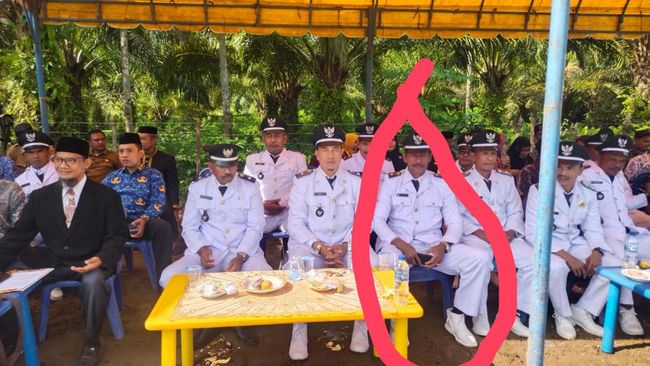 Berdasarkan informasi diperoleh detikSumut, Ansari tampak duduk di kursi depan saat mengikuti upacara di lapangan bola setempat, Kamis (17/8/2023). Dia tampak mengenakan seragam resmi warna putih dan topi.