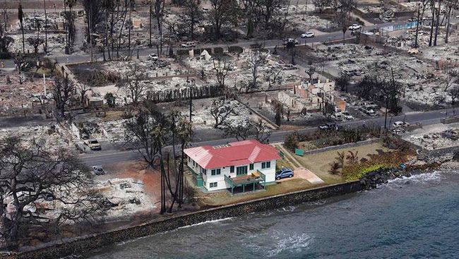 Satu unit rumah viral karena masih tegak dan utuh di tengah rumah-rumah lain habis dilahap api kebakaran di Maui, Hawaii. Rumah berlantai dua itu pun kini terkenal dengan sebutan rumah atap merah.