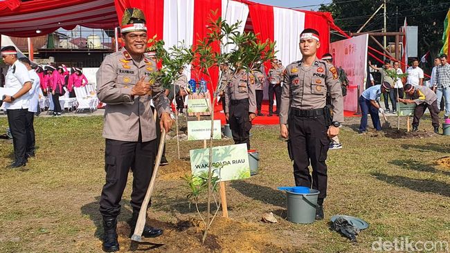 Wakapolda Riau Brigjen Polisi K Rahmadi melakukan penanaman pohon di Pekanbaru. Ada 45.233 pohon yang ditanam di seluruh wilayah Riau.