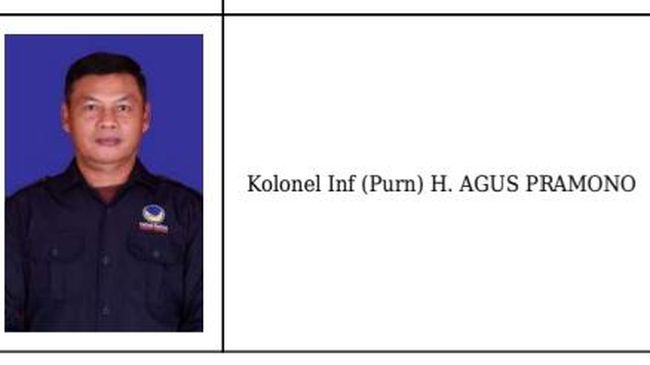 Dalam DCS, terpampang foto Agus pakai baju Partai NasDem biru tua. Di sisi kiri, tertulis jelas nama Kolonel Inf (Purn) H Agus Pramono yang berdomisili di Kota Pekanbaru dengan Nomor Urut 8.