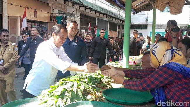 Pantauan detikSumut di Pasar Brahrang, Jumat (25/8/2023) Jokowi terlihat tiba sekitar pukul 10.01 WIB. Warga dan para pedagang terlihat antusias menyambut kedatangan Jokowi.
