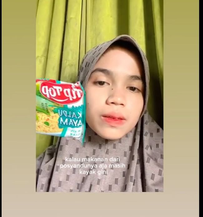 "Gimana stunting mau dicegah kalau makanan dari Posyandu kayak gini. Ada nilai gizinya? Menambah berat badan?" kata Yulia diawal video.