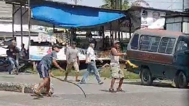 Viral, satu video bernarasi anggota Organisasi Kepemudaan (OKP) terlibat bentrok di Simpang Sicanang, Kecamatan Medan Belawan, Kota Medan. Anggota OKP ini membawa senjata tajam dan saling lempar batu.