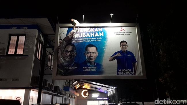 Baliho yang menampilkan Anies Baswedan dan Ketum Partai Demokrat Agus Harimurti Yudhoyono (AHY) di Kantor DPD Partai Demokrat Sumut diturunkan. Penurunan baliho tersebut setelah intruksi dari DPP keluar.