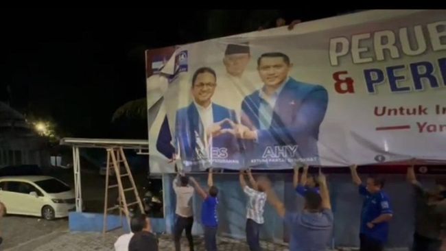 Pada baliho tersebut memuat gambar Anies, AHY berseragam biru Demokrat. Di belakang keduanya terdapat foto Susilo Bambang Yudhoyono (SBY) mengenakan baju berwarna putih dan berpeci.
