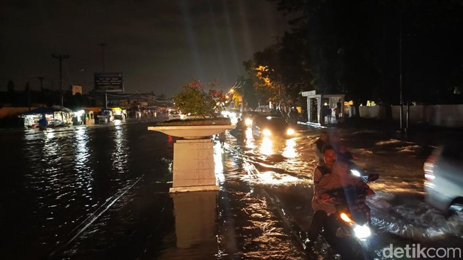 "Tunggu dulu bentar, masih ragu ini lewat atau tidak soalnya ini jalan akses pulang. Di tengah-tengah itu agak dalam udah pasti mogok kereta (motor) kayaknya. Dari tadi aja udah banyak yang mogok," ujar Azhar, pengendara.