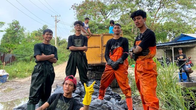 "Nah kebetulan juga ada komunitas juga, komunitas konten kreator juga yang lagi booming di media sosial yaitu Pandawara Group, kami juga langsung terinspirasi ke situ, jadi kami berpikir kenapa nggak melakukan seperti ini saja biar permasalahan banjir di daerah kami bisa teratasi," terangnya.