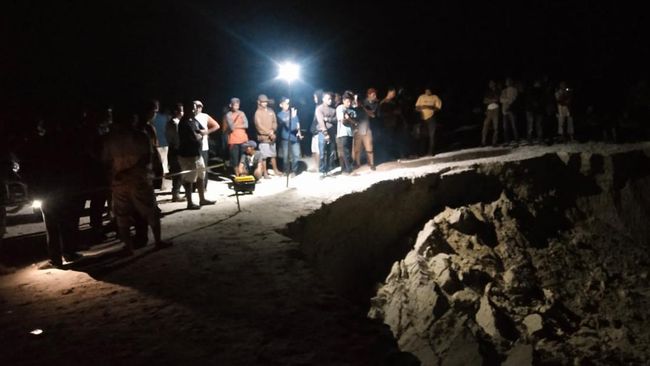 Tiba-tiba saja tebing tanah bekas galian aktivitas PETI tersebut longsor. Tanah langsung menimpa korban, sehingga korban tenggelam di timbunan tanah tersebut.