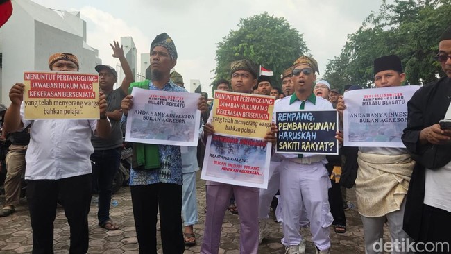 Selain itu, mereka juga membawa poster-poster yang menyuarakan aspirasi mereka, salah satunya bertuliskan "Rempang-Galang bukan medan perang, hentikan kekerasan!.