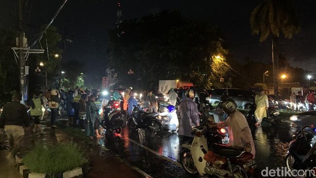 Terlihat para pemotor memanaskan kembali motornya usai berada di tempat yang tak terkena banjir.