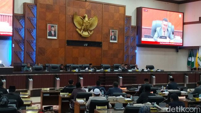 Pantauan detikSumut, rapat paripurna pergantian Ketua DPRA dipimpin wakil ketua DPR Aceh Safaruddin serta dihadiri anggota, Selasa (26/9/2023) malam. Rapat digelar di gedung paripurna DPR Aceh di Banda Aceh.
