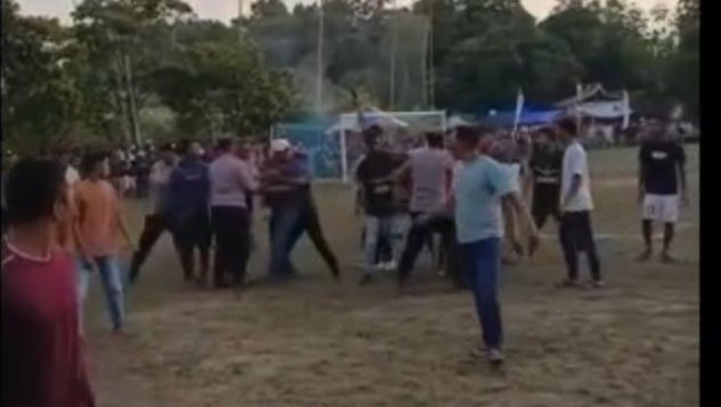 Dilihat detikSumut, Rabu (27/9/2023), beredar sejumlah video yang menampilkan pemain bola berbaju hitam dan berbaju merah saling baku hantam. Tampak anggota kepolisian berbaju provost di lokasi langsung berlari melerai.