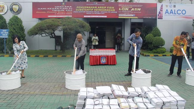 "Pemusnahan arsip ini merupakan bagian dari komitmen Kantor Imigrasi Kelas I Khusus TPI Medan untuk meningkatkan kualitas layanan dan mematuhi standar tata kelola kearsipan yang berlaku," ungkap Kepala Bidang Teknologi Informasi dan Komunikasi Keimigrasian, Adithia Perdana, Kamis (5/10/2023).