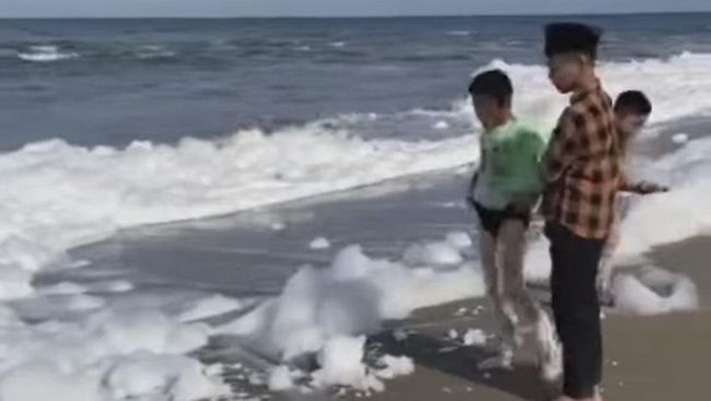 Dilihat detikSumut dari video yang beredar, Jumat (6/10/2023), tampak busa putih terombang ambing di tepi pantai. Beberapa pengunjung pantai tampak mendokumentasikan fenomena tersebut.