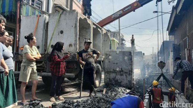 Pantauan detikSumut, Rabu (11/10/2023), warga terlihat mendatangi para pekerja proyek drainase. Warga mengeluhkan masalah air mati yang sudah 8 hari belakangan.