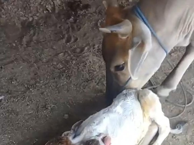 "Sapi berkepala dua," kata pria dalam video tersebut.