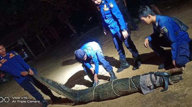 "Dilakukan penangkapan dan dievakuasi ke kantor. Hampir 1,5 jam. Diketahui buaya merupakan buaya muara. Panjang buaya kurang lebih 3 meter," ujarnya.