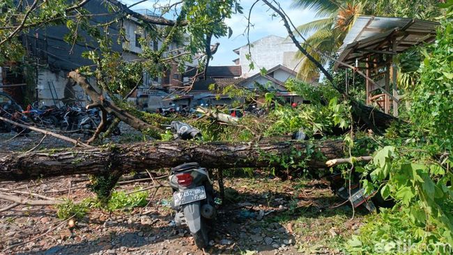 "Tadi hujan deras dan angin kencang. Sementara di bawah pohon ini ada banyak sepeda motor karyawan dari sebuah perusahaan lagi parkir," kata Ridho saat diwawancarai di lokasi, Senin (23/10/2023).