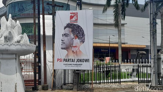 Pantauan detikSumut, Kamis (26/10/2023), baliho PSI tersebut ada di Jalan Sisingamangaraja di dekat Tugu Sisingamangaraja, Medan Kota. Dalam satu baliho yang terpampang, tampak wajah Kaesang dan Jokowi sedang berpidato sambil mengangkat tangan. Dalam baliho itu juga tertulis tagline 'PSI Partai Jokowi'.