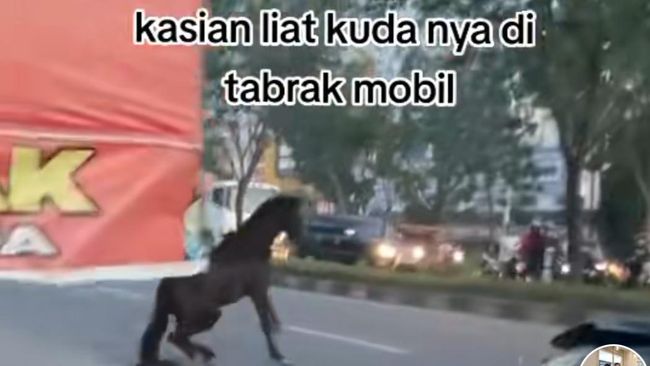 Video seekor kuda lepas dan tertabrak mobil di Pekanbaru, Riau, viral di media sosial. Kuda itu ternyata lepas dari tempat 'Wahana Berkuda Coach Aldo'.