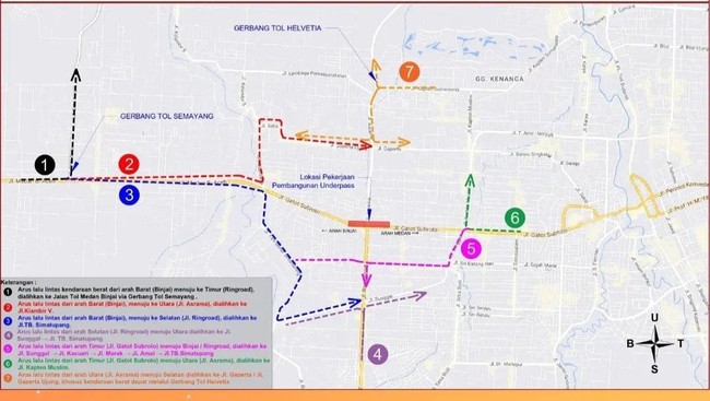 Kementerian PUPR membangun underpass di Jalan Gatot Subroto (Gatsu) simpang Jalan Ringroad dan Jalan Asrama, Medan. Berikut rute rekayasa lalu lintas di sekitar pembangunan underpass tersebut.