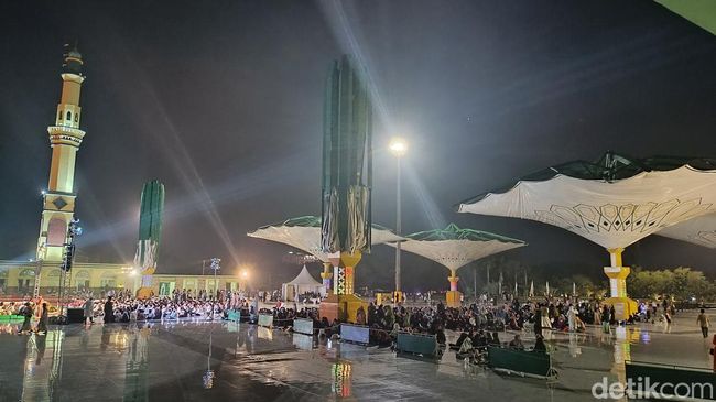 Ali menyayangkan payung tidak terbuka. Apalagi, posisinya tepat berada di depan kubah utama yang menjadi lokasi pusat acara maulid nabi.