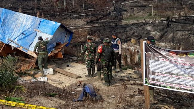 "Tim memusnahkan bibit sawit dengan cara disiram dengan roundup sebanyak 3.000 bibit. Tim gabungan merobohkan pondok-pondok sebanyak 15 unit," kata Heru.